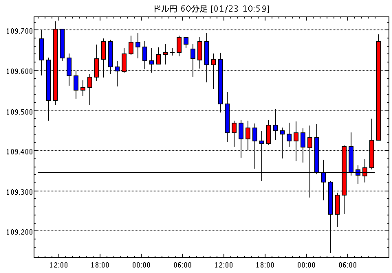 - 2019年1月23日 10:33 まだ「方向感は定まらず」、ただ本日は「幾分、反発優勢」…!? 米国ドル 株価予想 ◆方向感定まらず-109円台で揺れ動き ※ご注意:予想期間は1月24日と表示されていますが、本日(1月23日)の東京・欧州・NY市場の値動きを想定した記述となります “109.50-30円のドル買いオーダー”を割り込むなど、昨日は“株安⇒円高”が想定以上に進行した印象があります