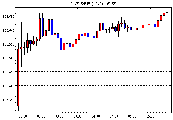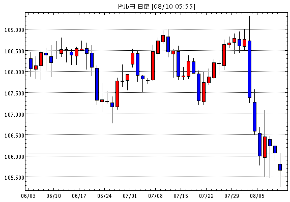 【米ドル円105.62】8月11日05:30現在のFXテクニカル・掲示板情報まとめと今後の為替展望【USD/JPY】