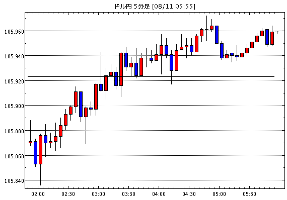 - 2020年8月10日 23:26 ドルの調整局面 FXだけで生活しちゃおー 本日は日本が祝日です ドル円は106.20円まで上昇しました ただ106円台が維持できず、現在は105.85円付近で推移しています