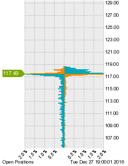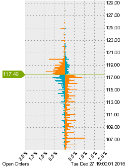 - 2016年12月27日 14:45 ドル円 ディーラーズ・バトル24 117.00/10近辺ではBid厚く、仲値にかけて117.45/47まで上昇 その後は、117.30/40台で小動き