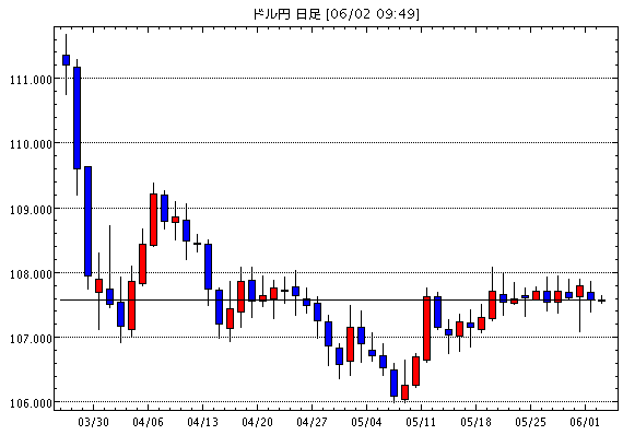 - 2020年6月1日 10:12 [米ドル円]レンジブレイク かざみどり (米ドル円日足)トランプ大統領の記者会見を控えドル円は107円70銭から107円08銭まで下落 その後NY市場では月末の特別なフローが入ると107円88銭まで上昇 記者会見では特に目立った材料がなかったことでそのまま高値圏で引けている
